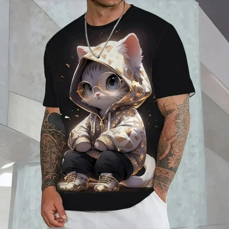 Neues modisches Tier 3d bedrucktes Herren-T-Shirt, Hip-Hop-Trend übergroßes O-Neck-T-Shirt Retro lässig Sommer neues Herren-Top