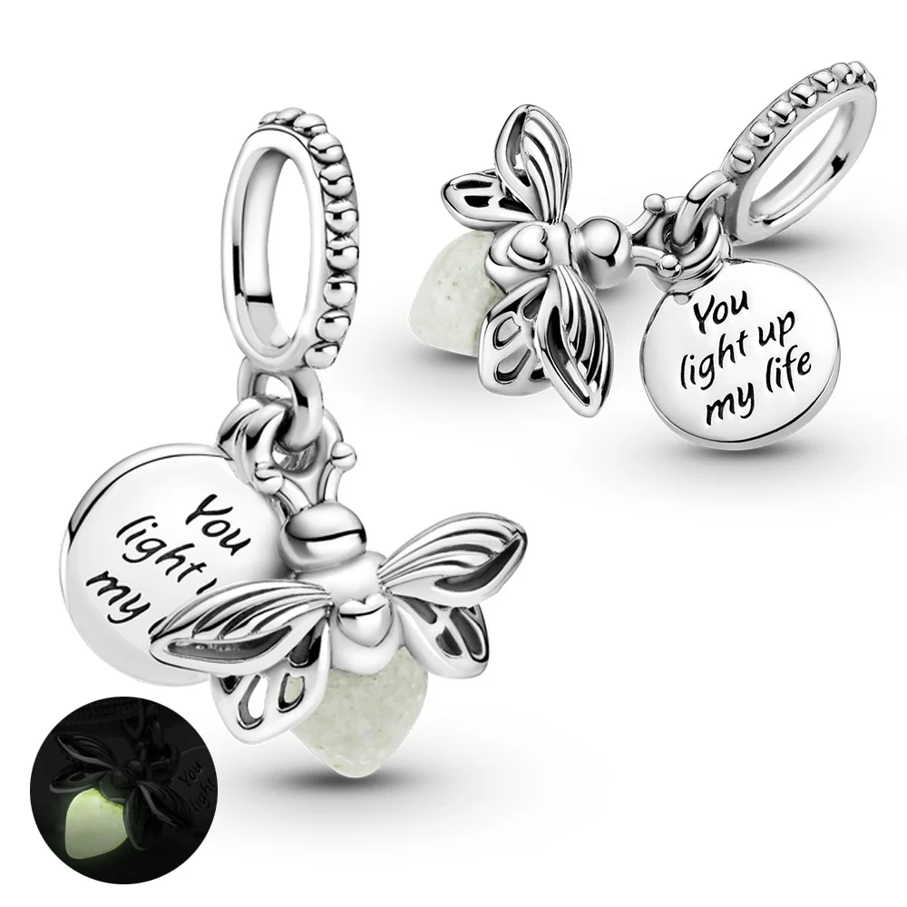 Sterling Silber Gold im Dunkeln leuchten Glühwürmchen Anhänger passen Pandora Armband Frauen DIY Anhänger für Schmuck machen Geschenke