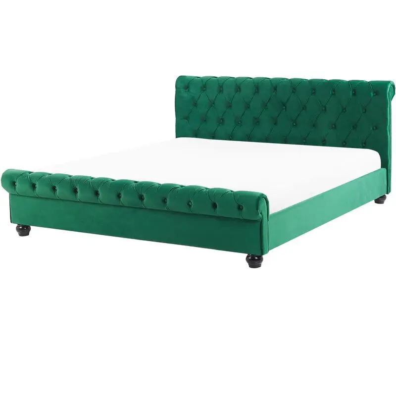 Chesterfield Doppelbett grüner Samt 180×200 cm bequem mit Glamour-Trend für moderne oder klassische Schlafzimmer