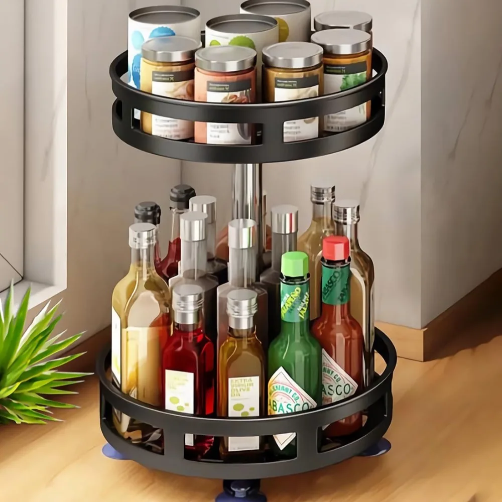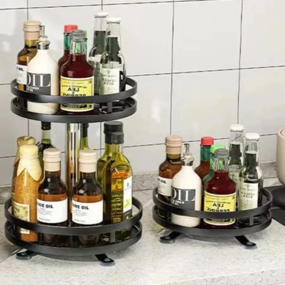Rotatable Storage Rack Condiment Holder Salt Oil Sauce Vinegar Spice Jar Rack Seasoning Storage Box Kitchen Organizers Shelves