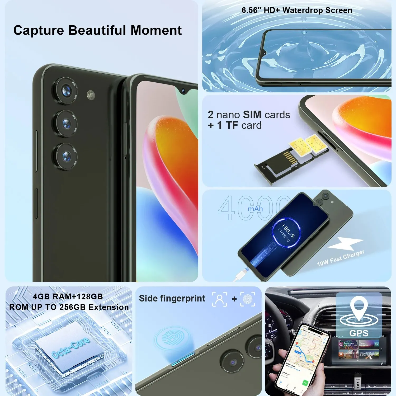 Quick View198,06 € – 259,86 €Kxd a09 4g Smartphone Android 12, 4GB RAM, 128GB ROM, Octa-Core, 6,56 Zoll, 13MP Kamera, 4000mAh mit 10W Lade-Handy