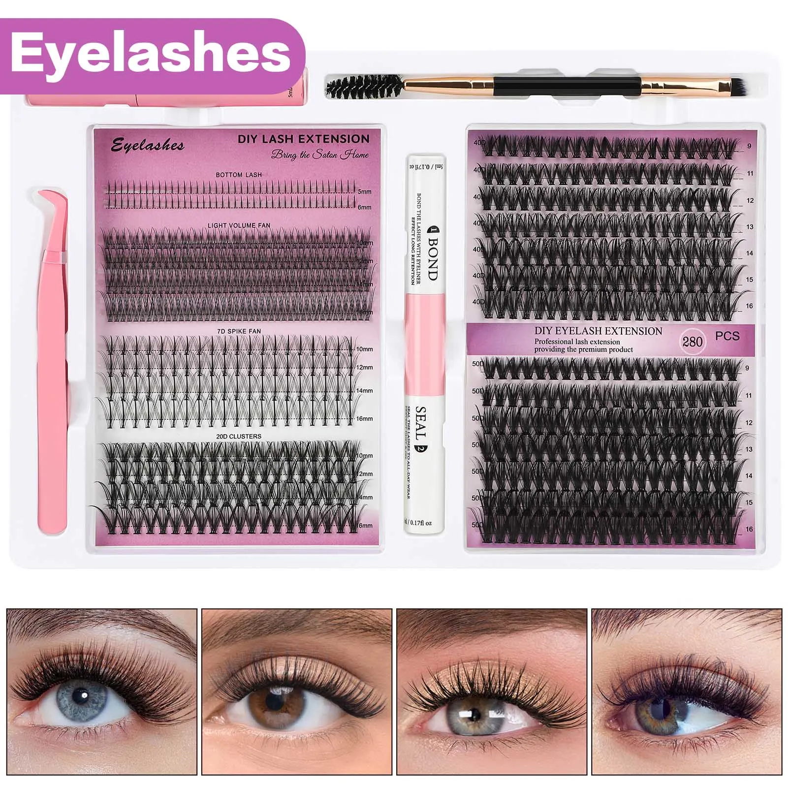 120/200 Cluster DIY Wimpern Cluster Extension Kit mit Bond und Seal Make-up Tool weiche individuelle Wimpern Maquill aje Faux Cils