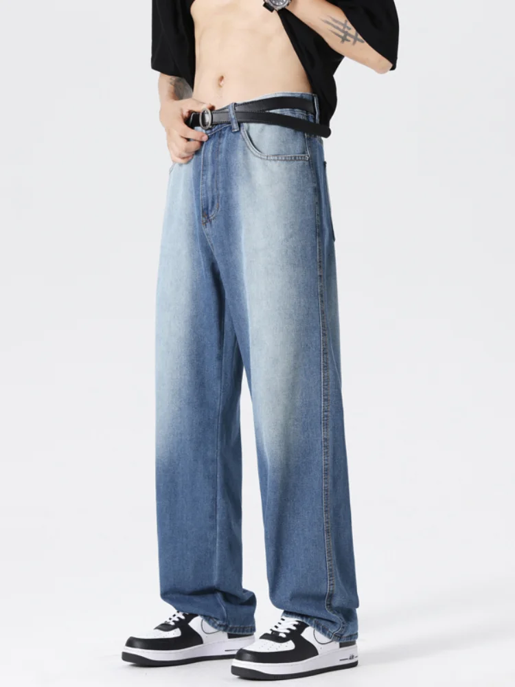 2024 neue Stil männer Jeans Lose Fit Gerade Bein Casual Hosen Amerikanischen Stil Breite Bein Denim Hosen