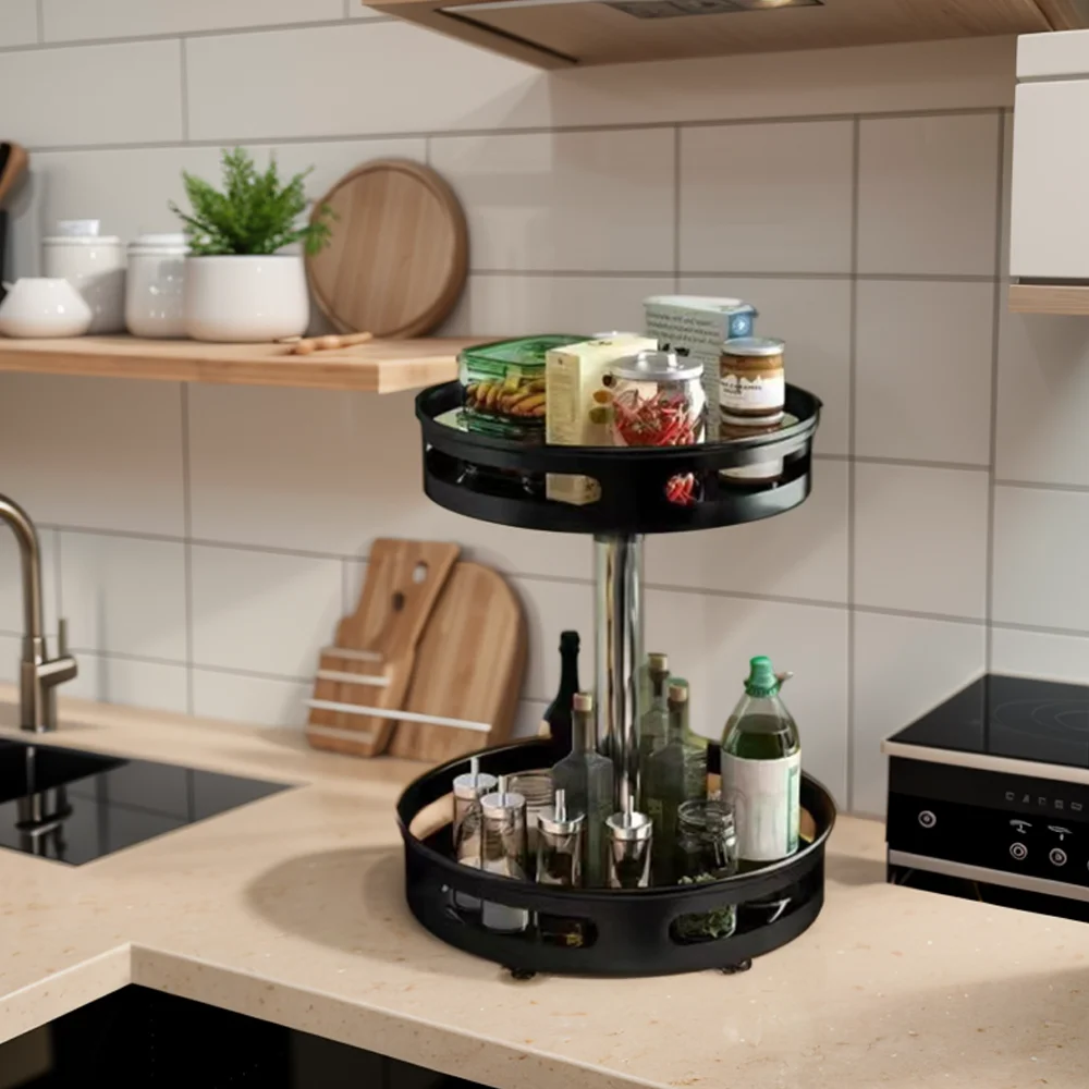 Einfach – 360° drehbar°: Die Unterseite ist rutschfest und stabil, und der Drehtisch dreht sich, ohne zu verrutschen, sodass Sie in jedem Winkel problemlos auf Gewürzflaschen, Obst und Gemüse oder Kosmetika und Hautpflegeprodukte zugreifen können.