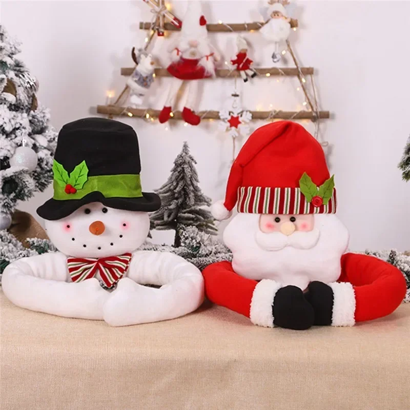 1. Der leichte Santa/Schneemann-Kopf hat ein glückliches und intimes Gesicht und trägt einen traditionell dekorierten Feiertags-Zylinder, der seine langen Arme in eine festliche Umarmung umwickelt. Es kann eine Weihnachts atmosphäre hinzufügen und die festliche Freude verbessern.