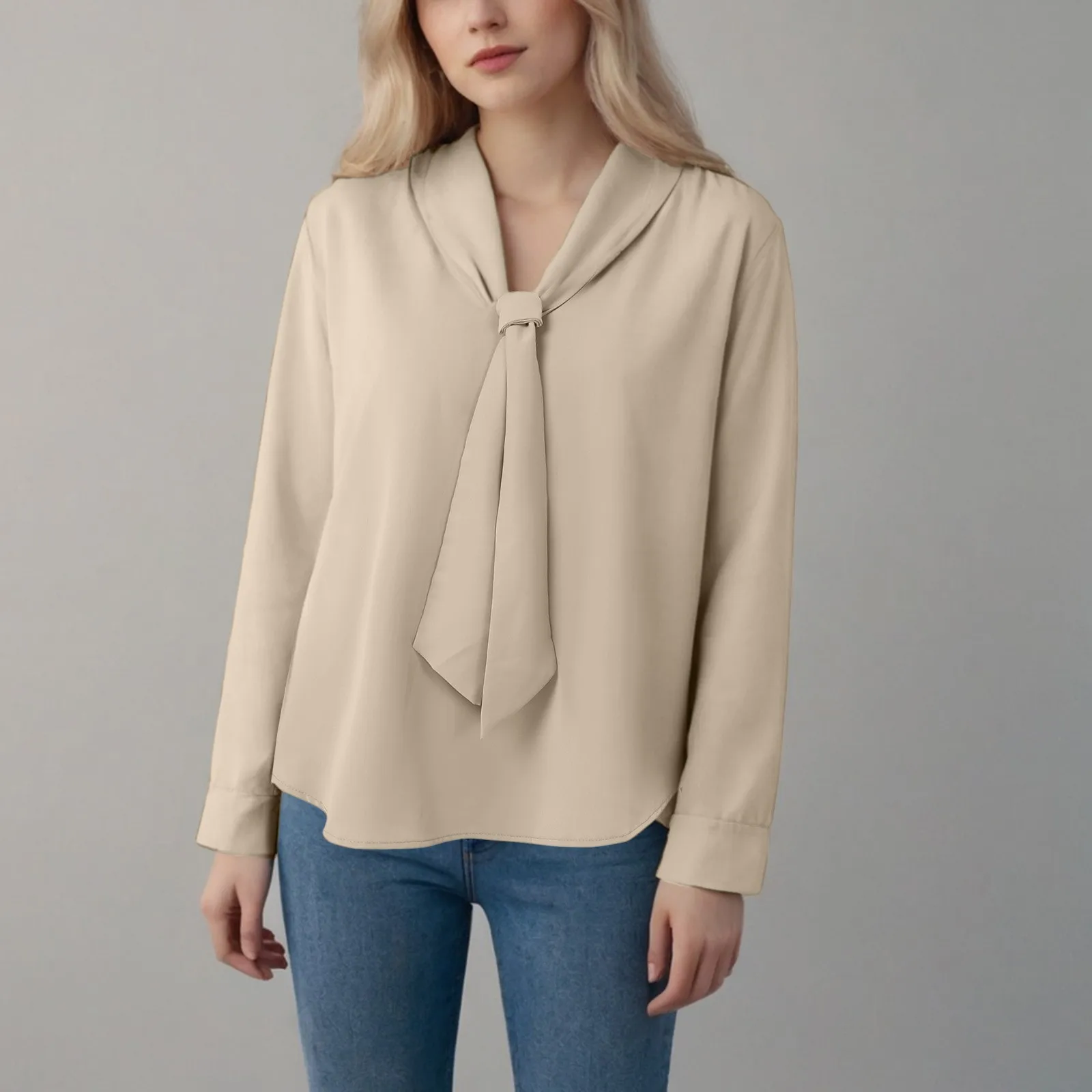 Startseite » Shop » Champagner Look Satin Hemd frauen Herbst Und Winter Neue Französisch Vielseitige Langarm Top Sinn für Design Bowknot Frauen blusen
