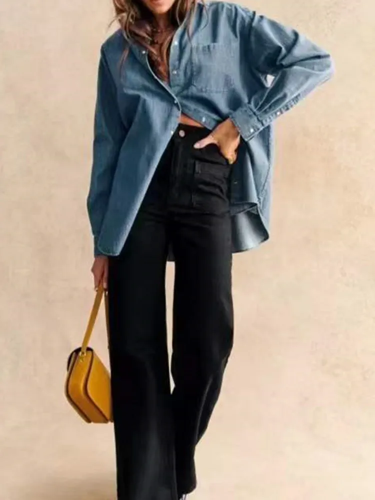 Startseite » Shop » Damen Bluse Streifen Hemd Patch Pocket Top Herbst locker entspannt Büro Dame Langarm Hemd Hemden & Blusen Camisas