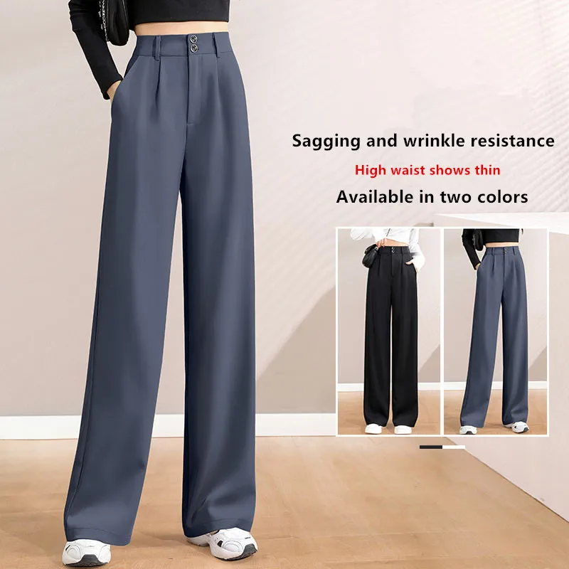 Frauen kleider Frühling Herbst koreanische Mode hohe Taille elegante Hosen Büro Dame lässige Taschen schwarze schlanke gerade Hose