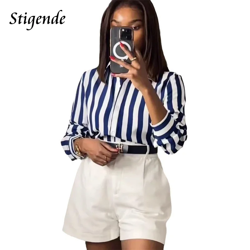 Startseite » Shop » Frühling Herbst Mode gestreifte V-Ausschnitt ärmellose Hemden Damen bekleidung koreanische Pullover Einfachheit Temperament vielseitige Bluse