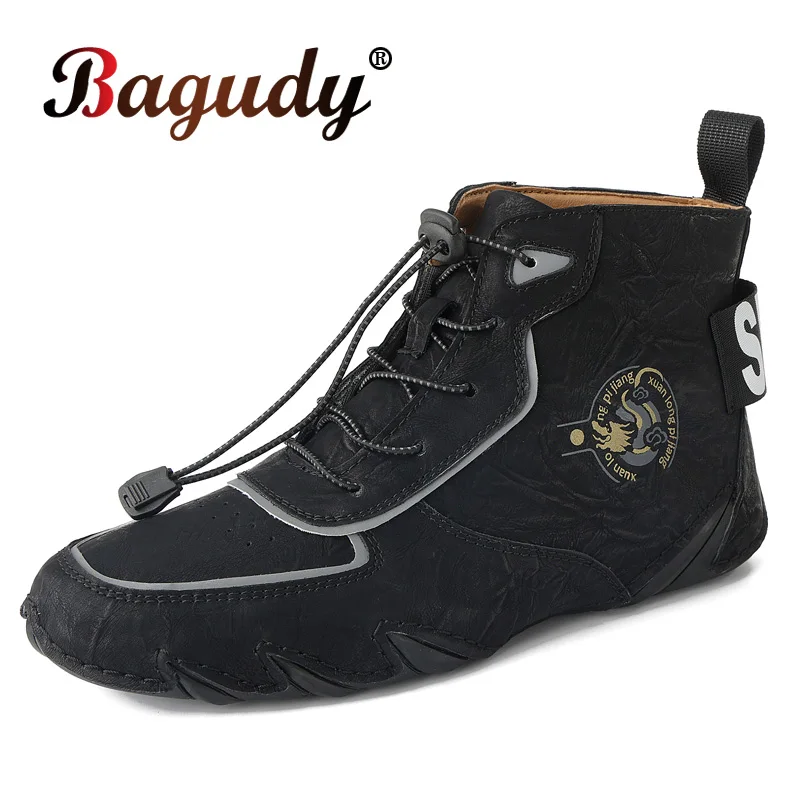 Herren-Schneestiefel mit Klettverschluss, Wanderschuhe, rutschfeste Stiefeletten, leichte Leder-Reitschuhe für Outdoor-Sportarten