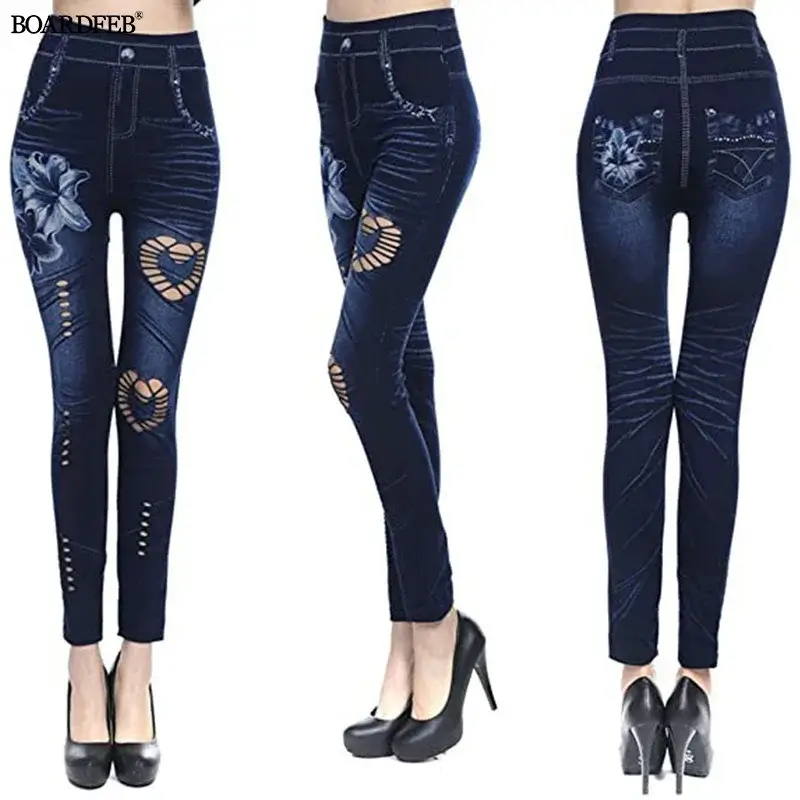 Frauen hohe elastische Taille Jeans Strumpfhosen lustige Imitation Denim Print Workout Yoga Hose