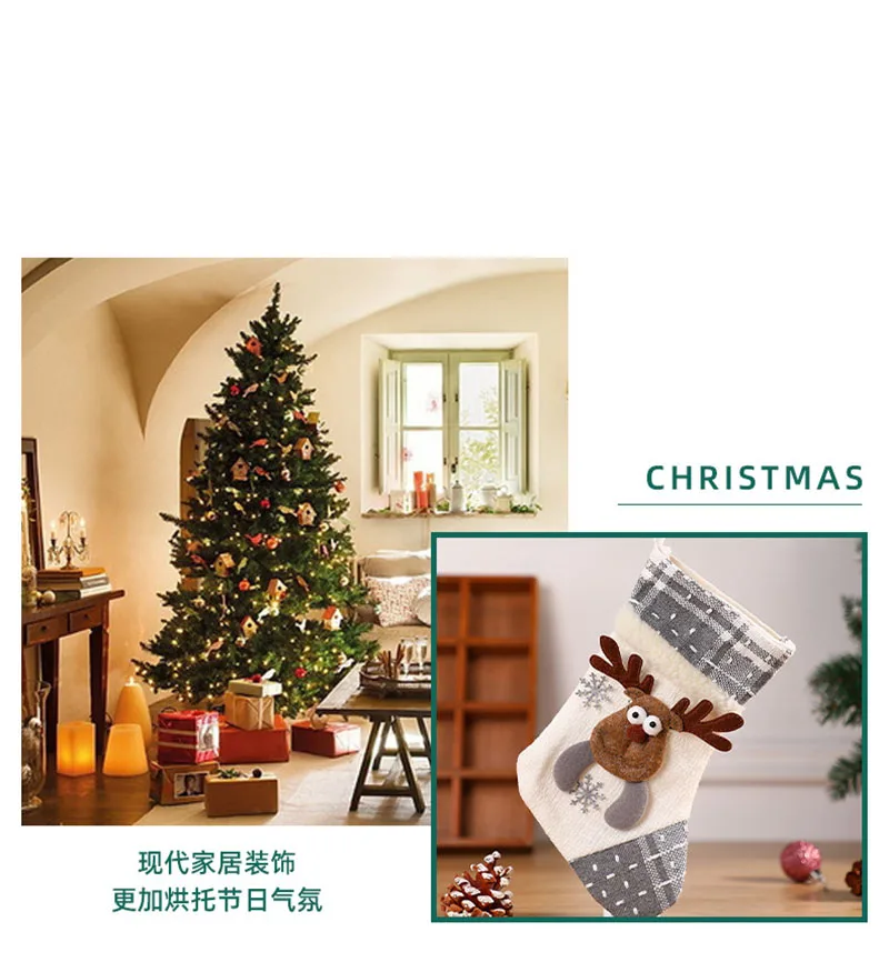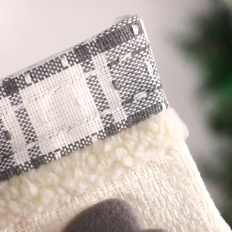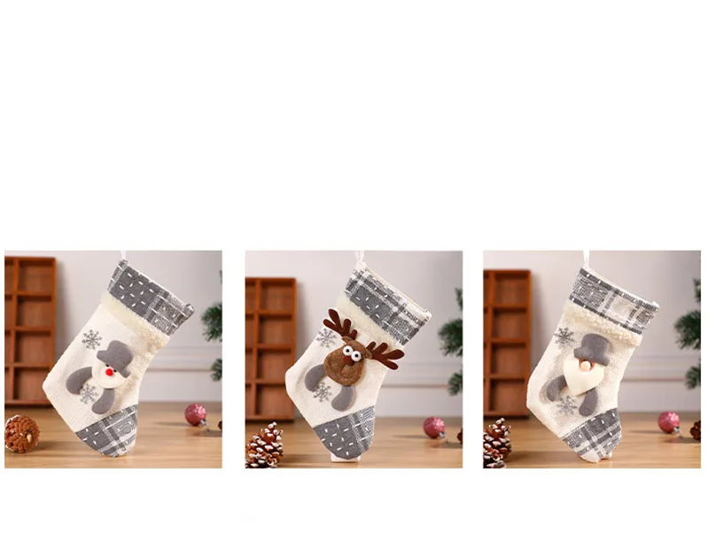 New Fabric Art Christmas Socks Grey White 2024 Christmas Decoration Santa Claus Snowman Candy Gift Bag Christmas Tree Hanger