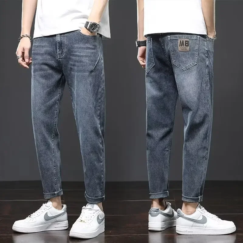 Röhrenjeans für europäische und amerikanische Männer, trend ige High Street Distressed-Jeans im neuen Stil und zerrissene, knöchel lange Stretch-Jeans mit schmaler Passform