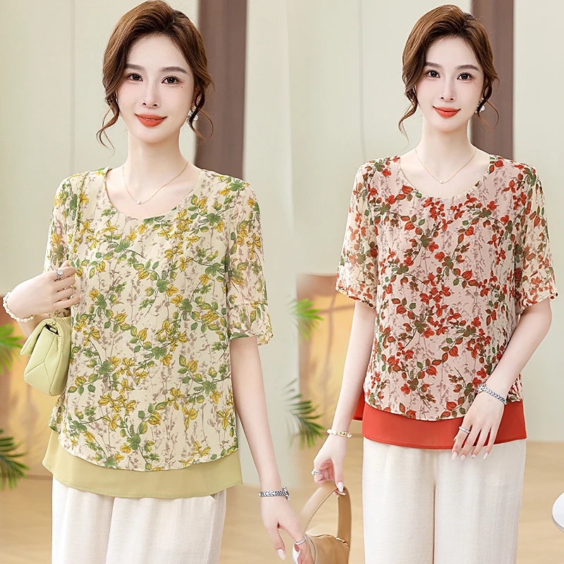 Startseite » Shop » Sommer frauen Kleidung Taste Verstärktes Beiläufige Polo-Neck Gedruckt Tops Mode Pendeln Alle-spiel 3/4 Hülse Chiffon t-shirt Weibliche