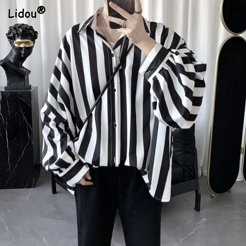 Stigende weiß blau gestreifte Loose Fit Shirt Frauen elegante Revers Hals Knopf Bluse