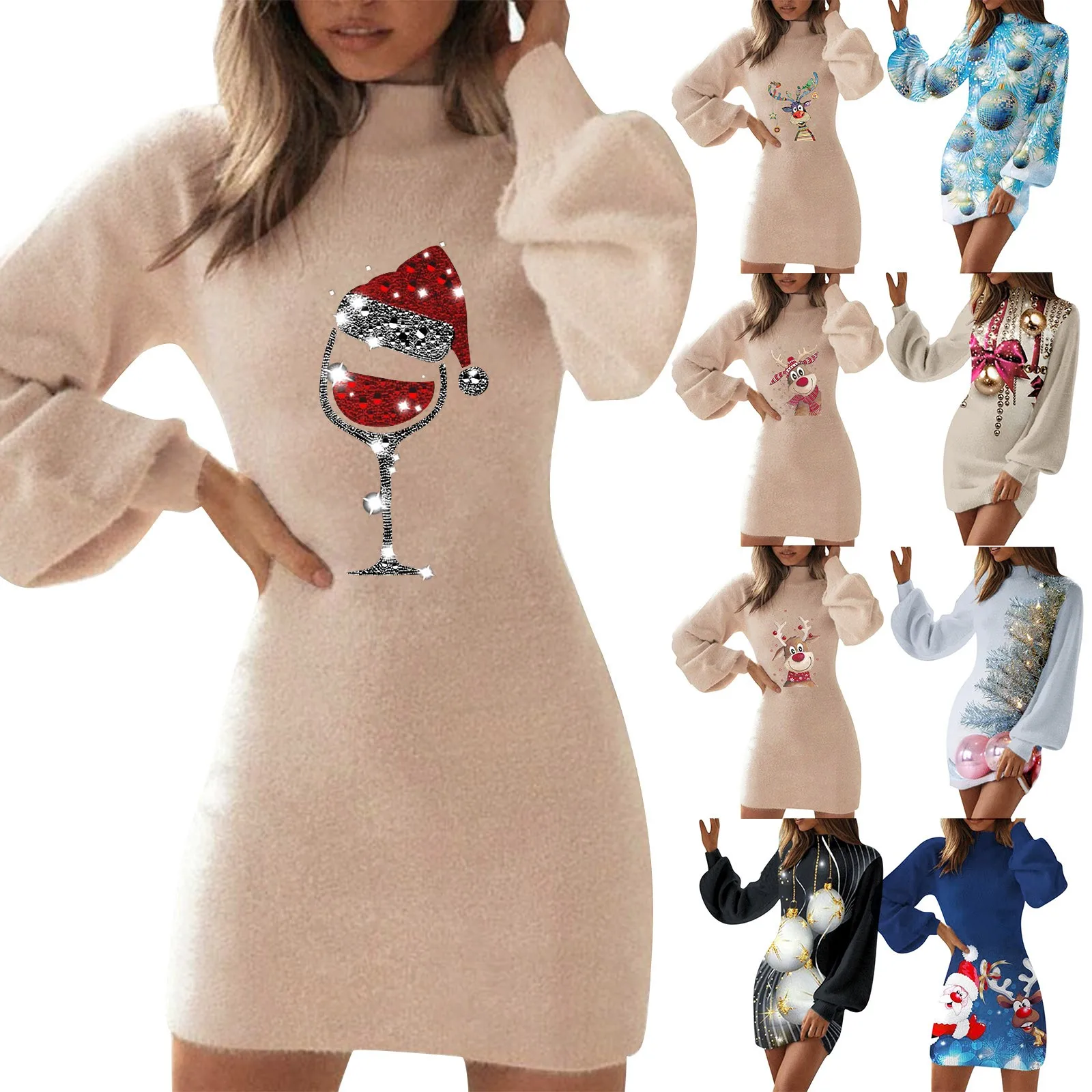 Rundhalsausschnitt/V-Ausschnitt/transparenter Herz-Ausschnitt, lange Ärmel/ärmelloses Weihnachts-Swing-Kleid, haben viele süße Muster wie Schneemänner, den Weihnachtsmann, Hirsch und so weiter.